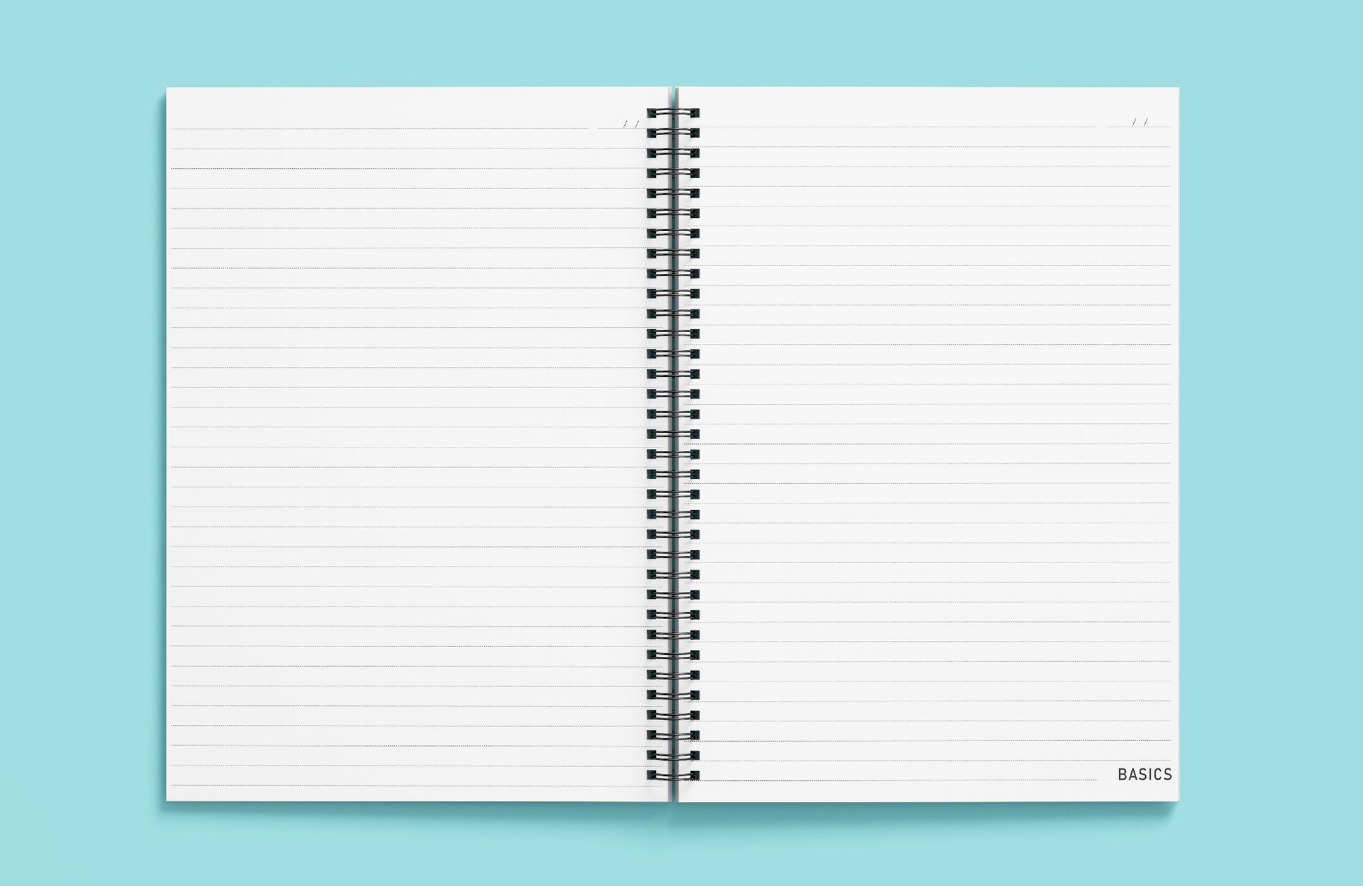 Basics designed notebook, featuring 80gsm imported paper that ensures a smooth and effortless writing journey. The high-quality paper not only enhances the comfort of your pen strokes but also provides an ideal surface for your thoughts to come to life.